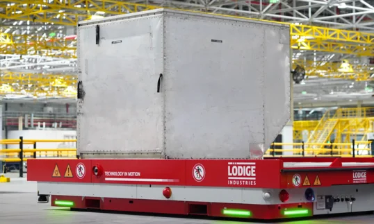 Yes. AGVs are designed to interface with Lödige slave pallets, FlexLoaders, racking systems, and powered conveyors.
