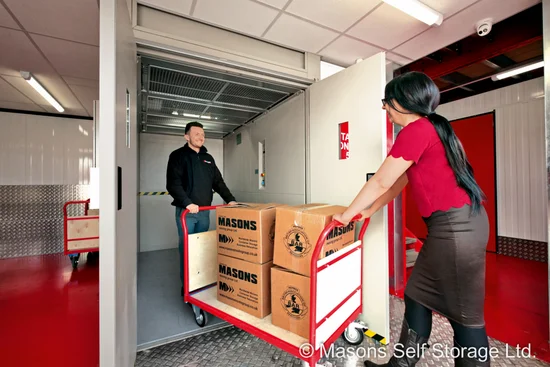 Praxisbeispiel „Masons Self Storage": Im Mietlager in South Wales, England, macht der Lödige ESCORTA den Lastentransport zum Kundenmagnet. CEO Gordon Mason erklärt: „Der problemlos installierte neue Aufzug ist enorm gut für unser Geschäft. Da sie ihre Gegenstände nicht mehr mühsam treppauf-treppab tragen müssen, kommen immer mehr Kunden zu uns."