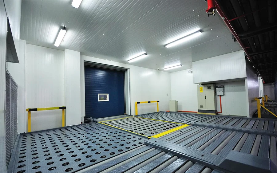 The project was a ‘turnkey’ project. Design, manufacture, installation and commissioning of the fully automatic Material Handling System was delivered by Lödige Industries. The system can operate in automatic, semi-automatic and manual modes. It is designed to handle a wide range of fresh food, more importantly; its secure cool chain logistics process enables the handling of pharmaceutical and biomedical products which require more stringent temperature controls. The project involved modification of Truck dock, workstation and ETV areas with the inclusion of 1 new castor deck and 1 new shuttle transfer vehicle.